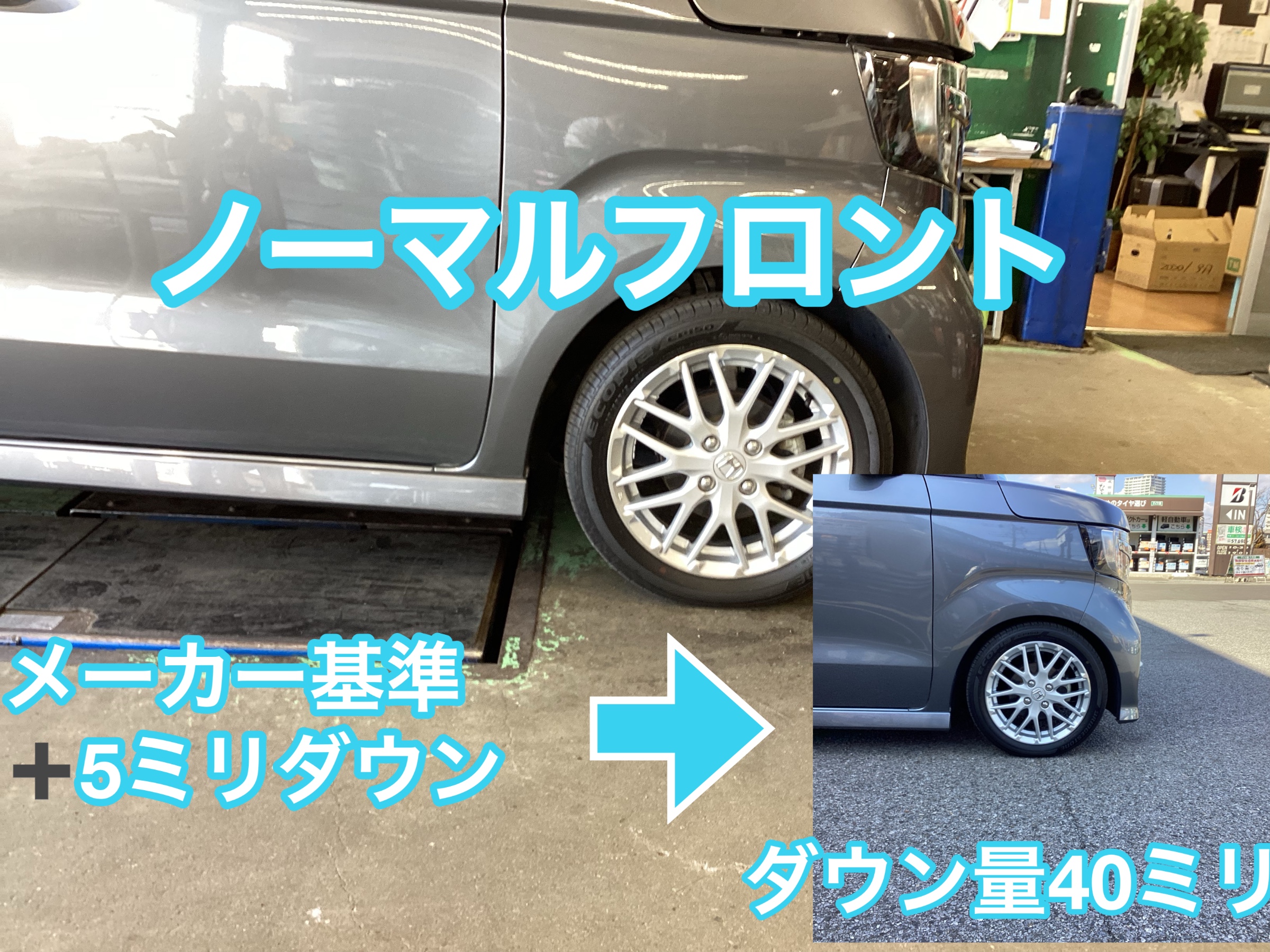 ホンダN-BOX 車高調テインフレックスZ JF3 タイヤ館八千代 1G締め アライメント