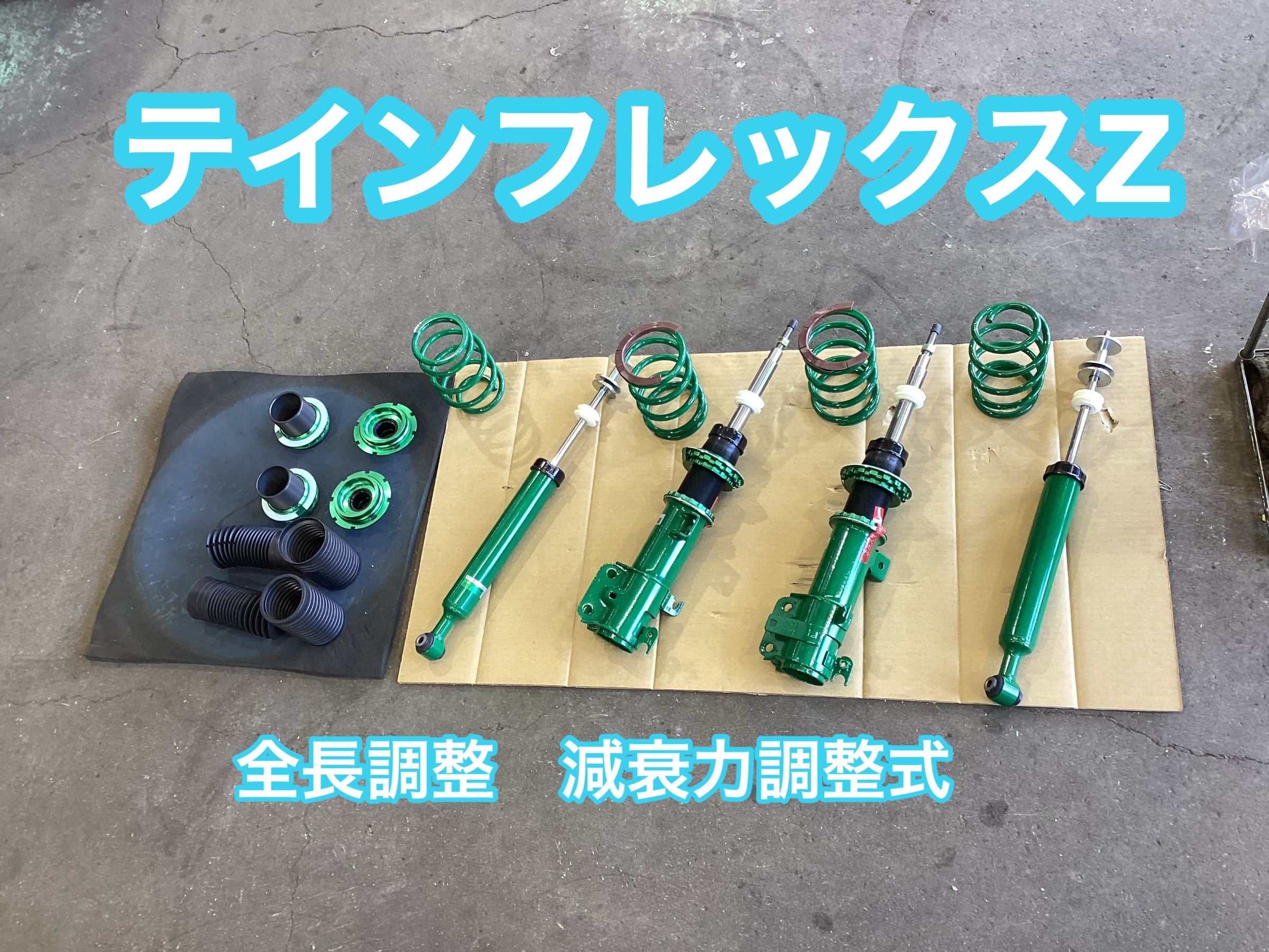 本日はホンダN-BOX JF3にテインフレックスZ装着 メーカー基準値からプラス5ミリほど更に下げた