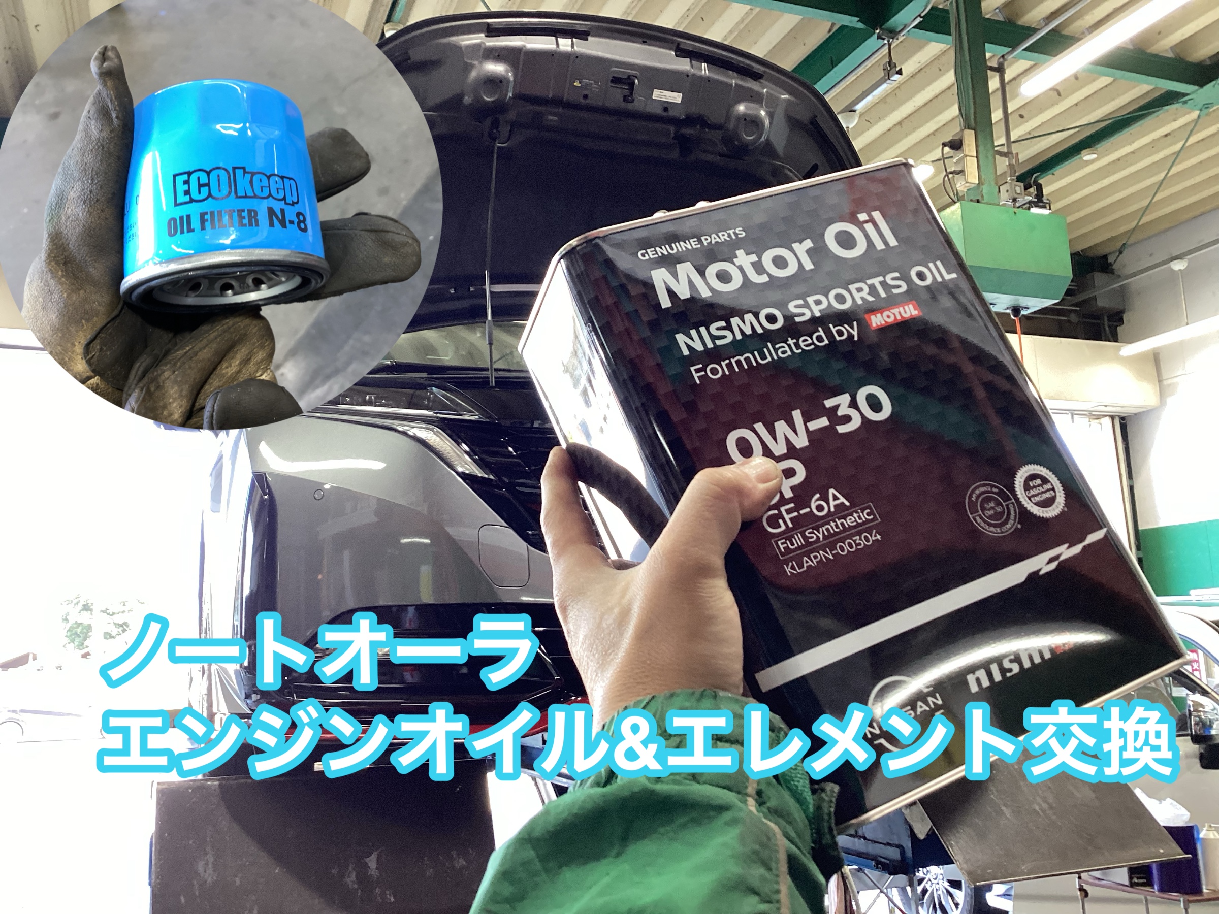 ノートオーラ オイル交換&エレメント交換 ニスモオイル取り扱い タイヤ館八千代 モチュール