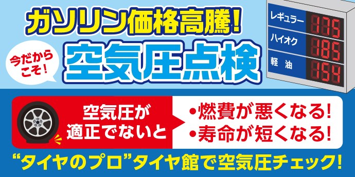タイヤを安全に、そして長く使っていただく為にも空気圧の点検はお忘れなく!!
