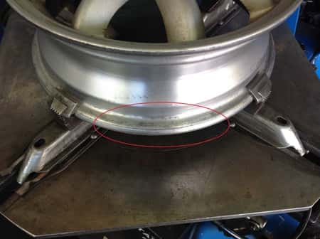 ホイールリム付近の清掃を行っています。