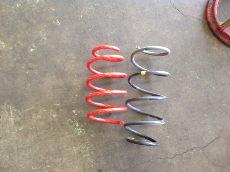 車高が下がったのが写真でも良くわかりますね。バネの長さも純正と比べた写真