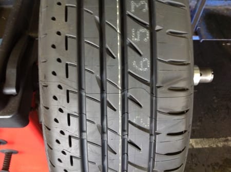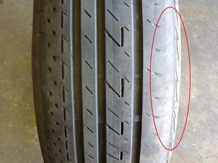 こちらのタイヤは外側ばかり偏って磨耗しているタイヤです。
