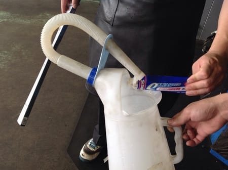 普通のフラッシングは短時間にエンジン内部の汚れをグワっと取るんですが、