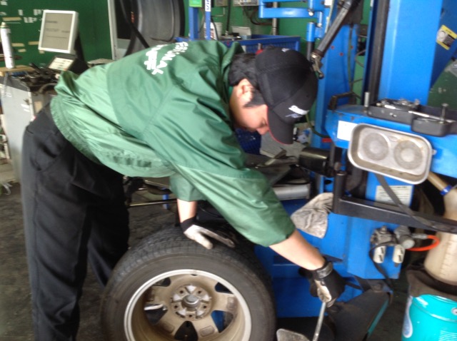 初日はまずまずの賑わいです!店長がタイヤ交換中
