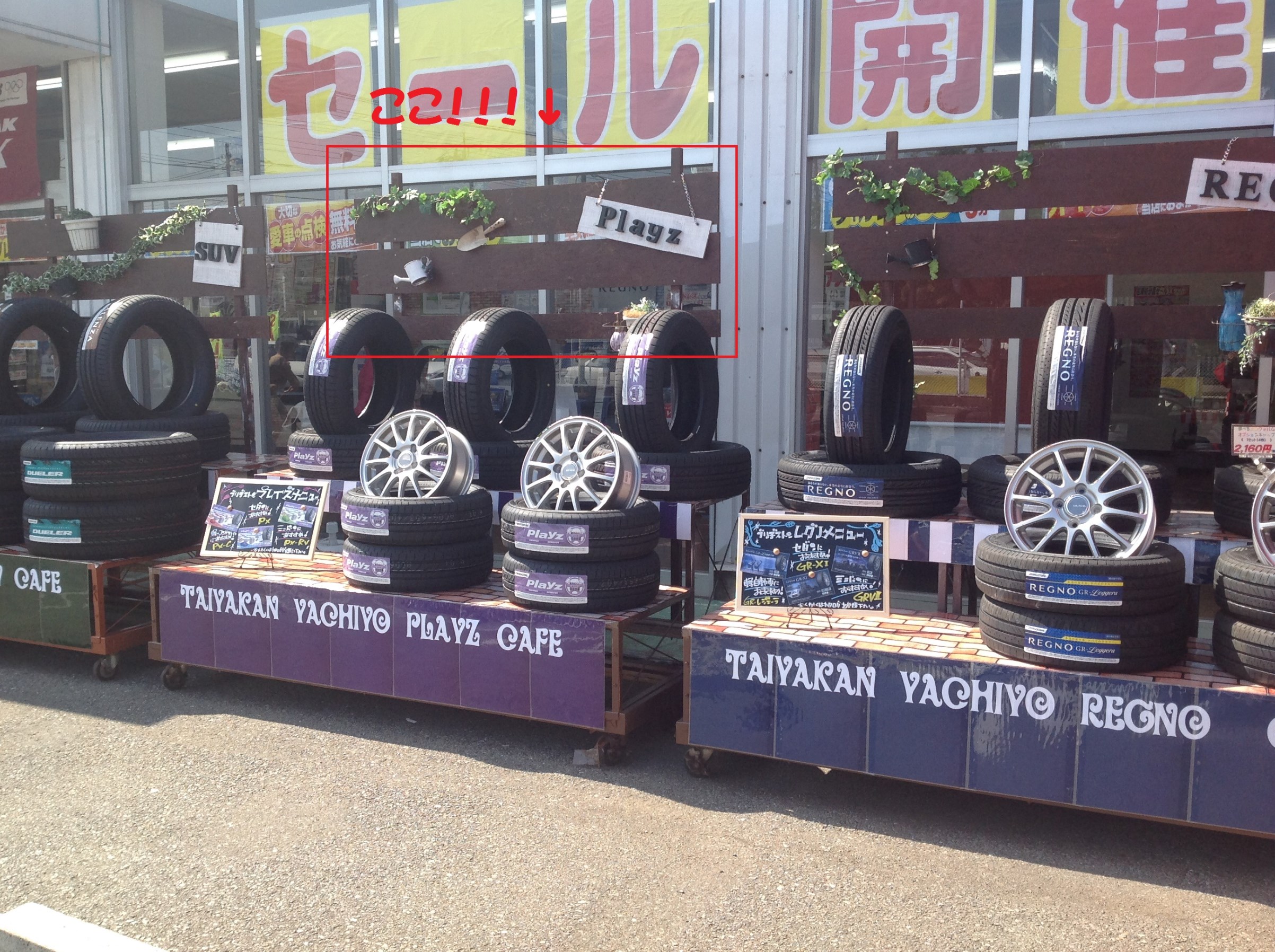 入口前のタイヤラックが見違えるほど可愛くなりました~!