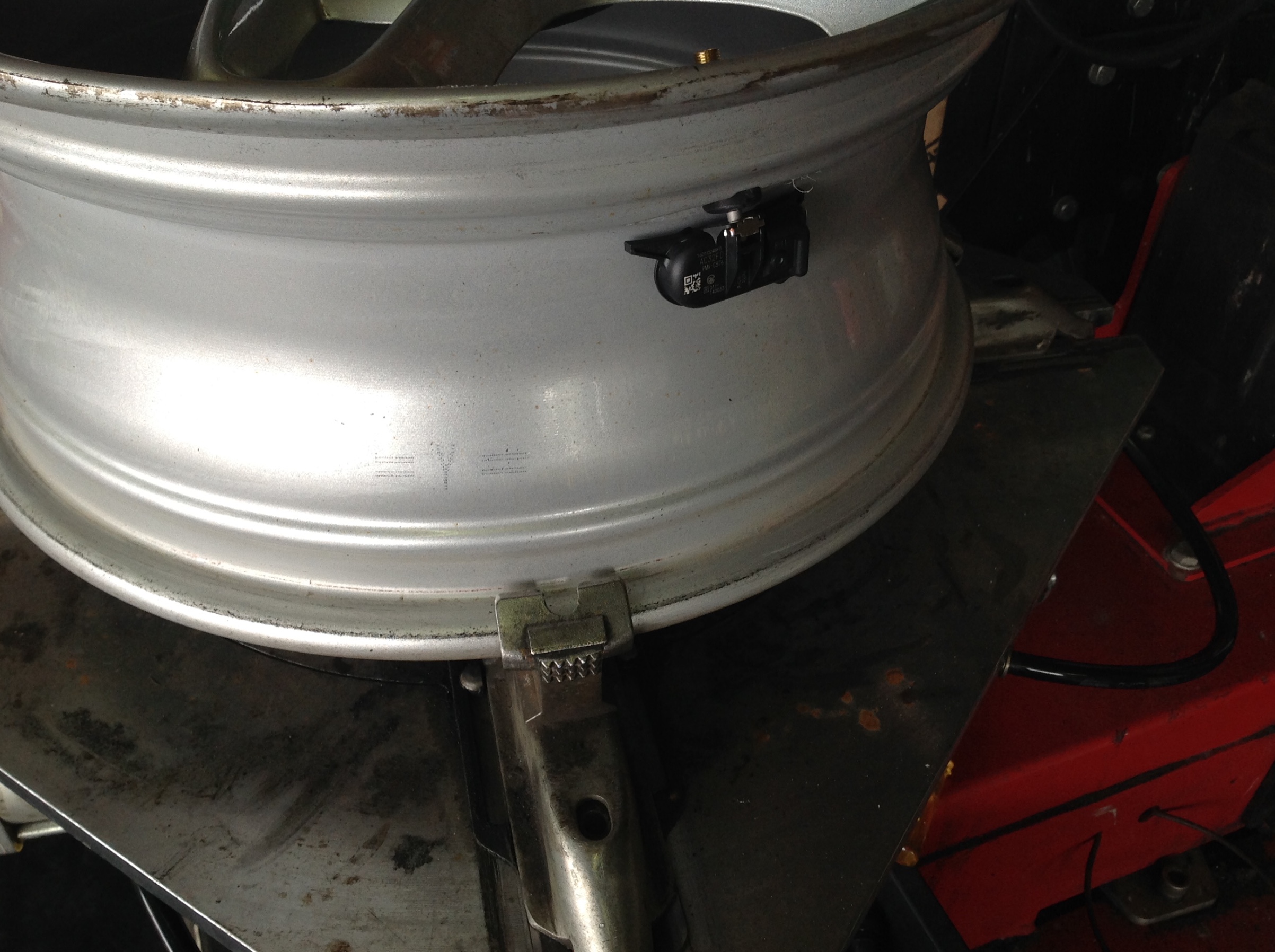 空気圧センサー付きバルブを装着しています、ホイールの内側に装着します。