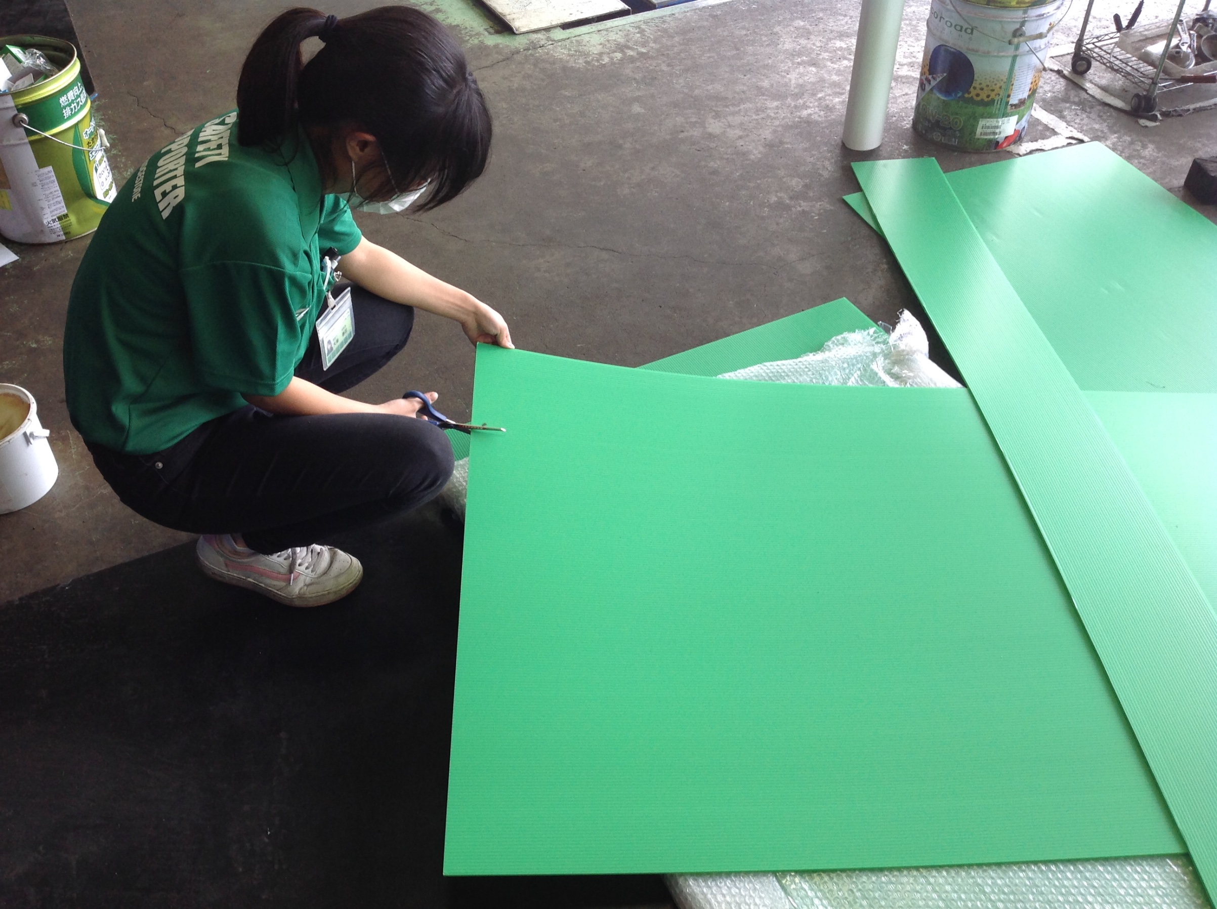 タイヤ館は外に告知しているPOPなどは手作りしています。はるちゃん頑張ってます。