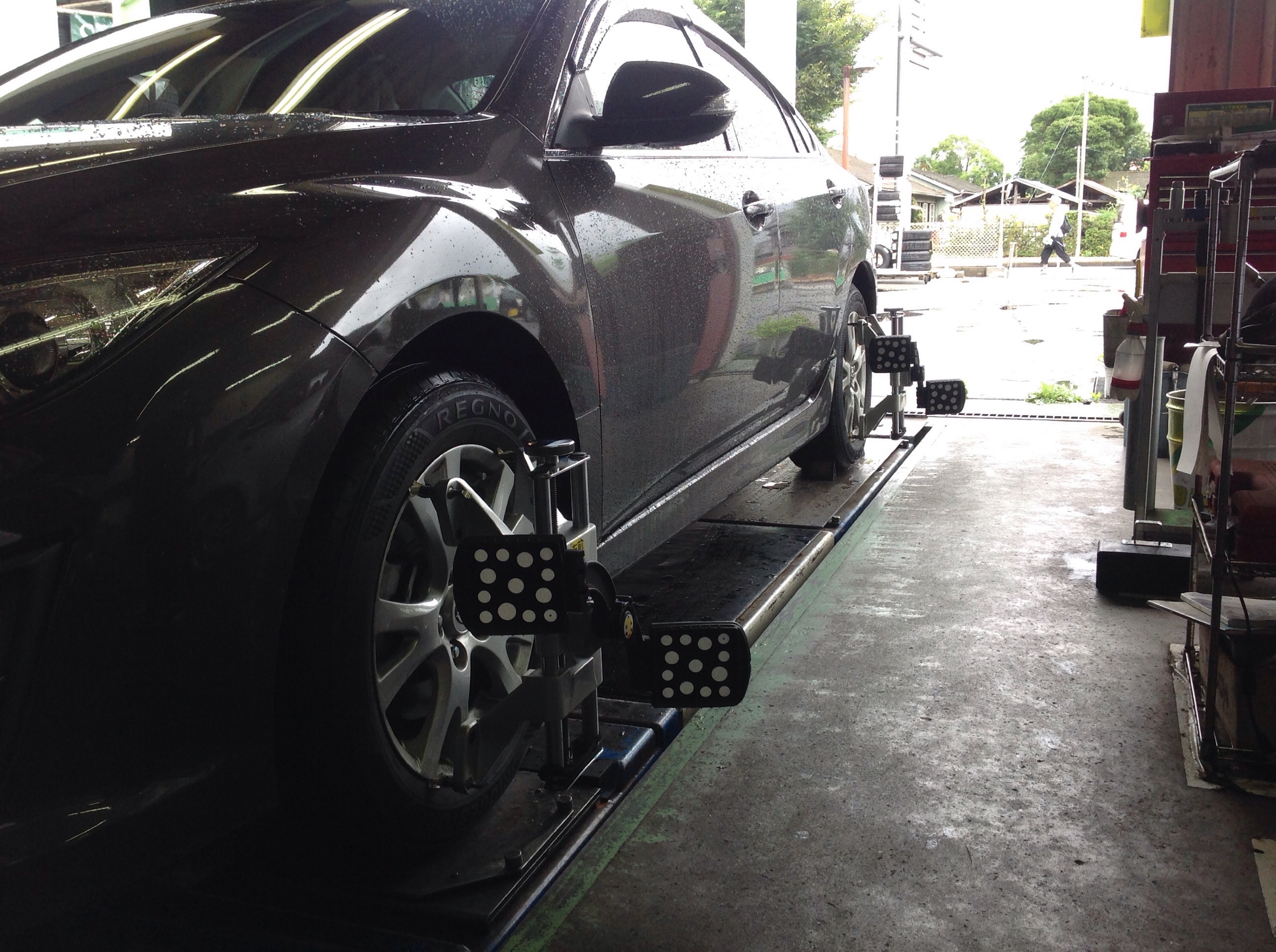 アライメントとは車の骨盤調整みたいなもので、タイヤの取り付け角度を調整致します!