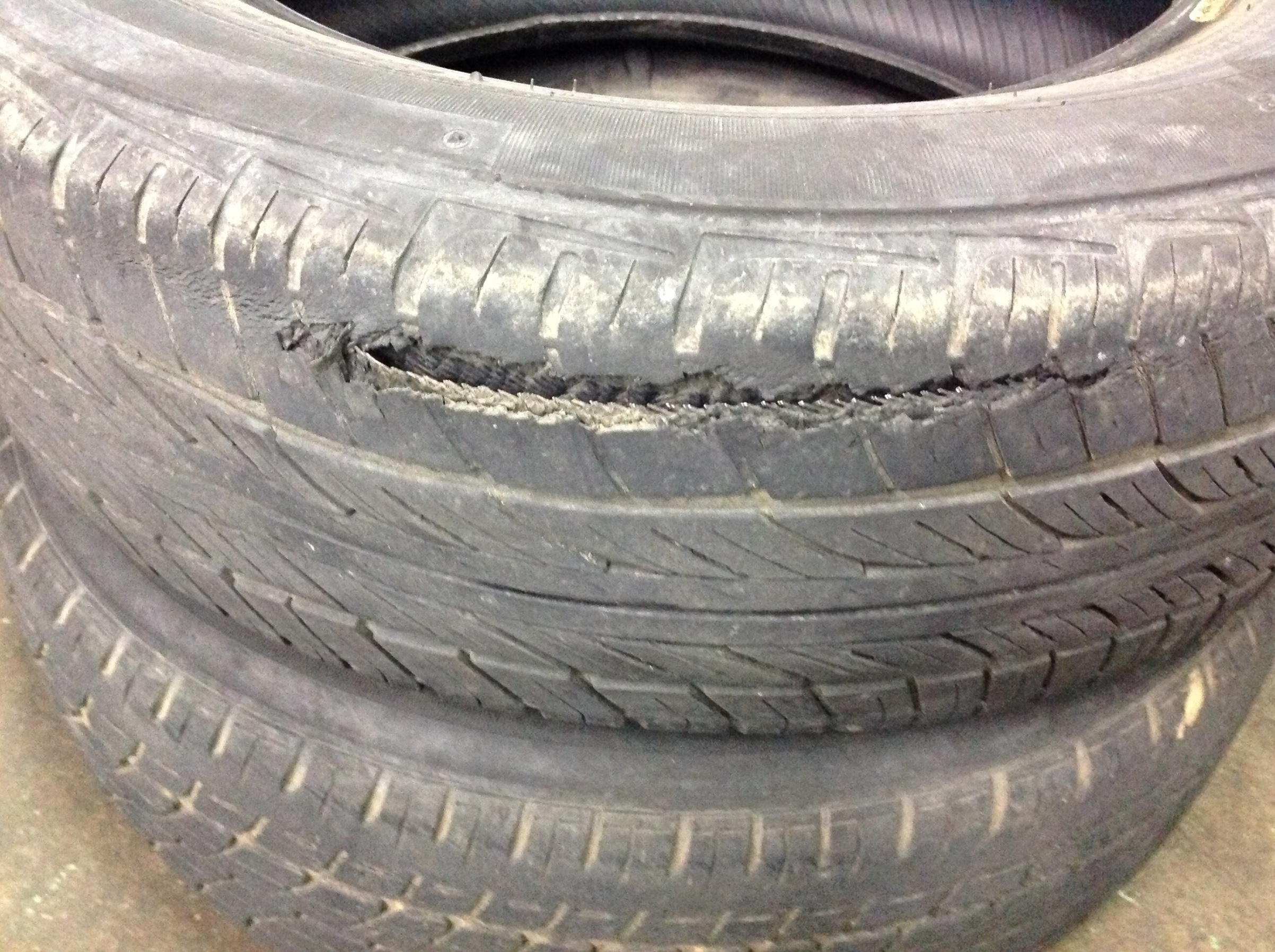 重さに耐えられなくなったタイヤがこういうパンクの仕方をします。