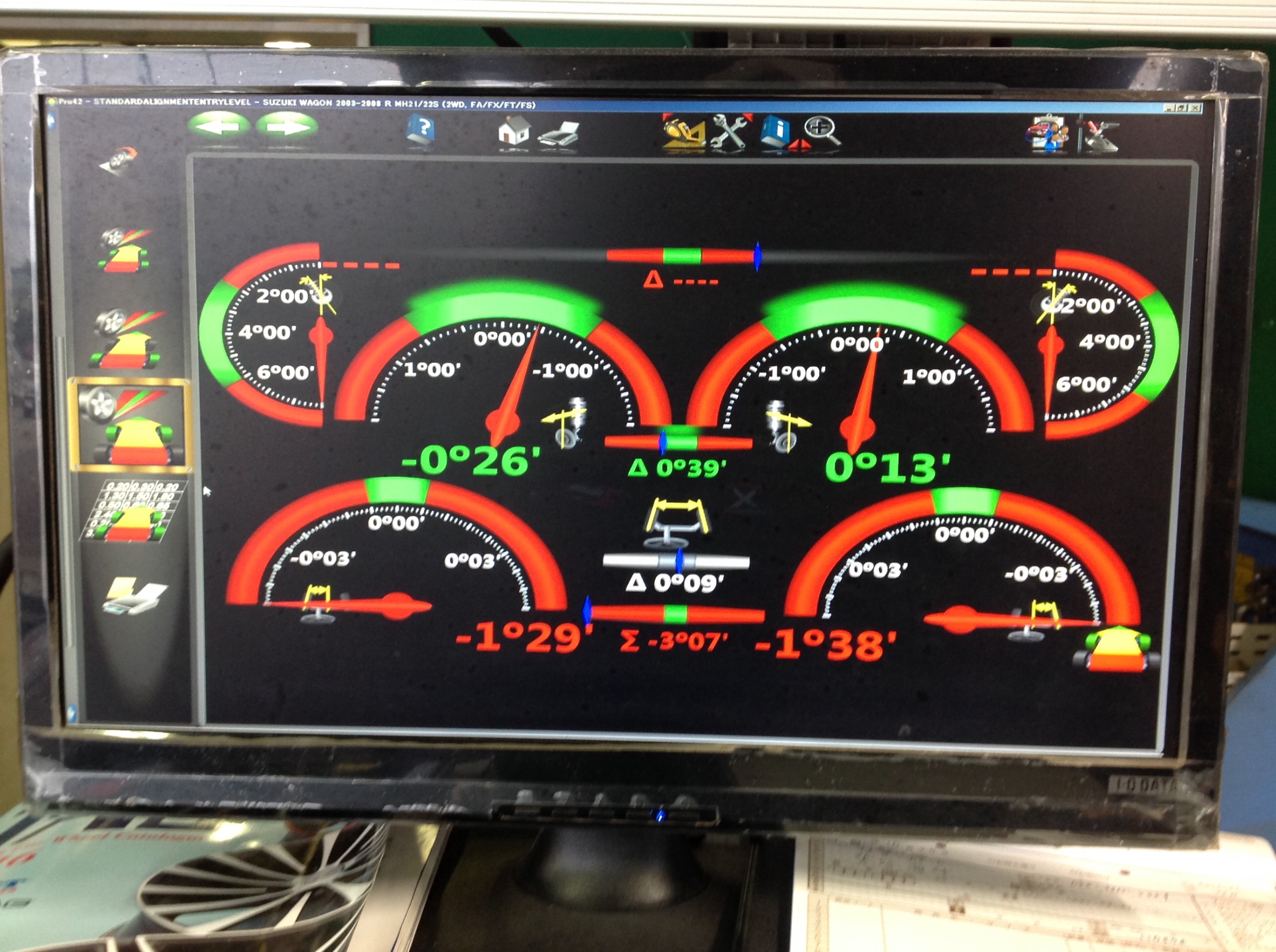 専用の機械で現在の取り付け角度を測定します。