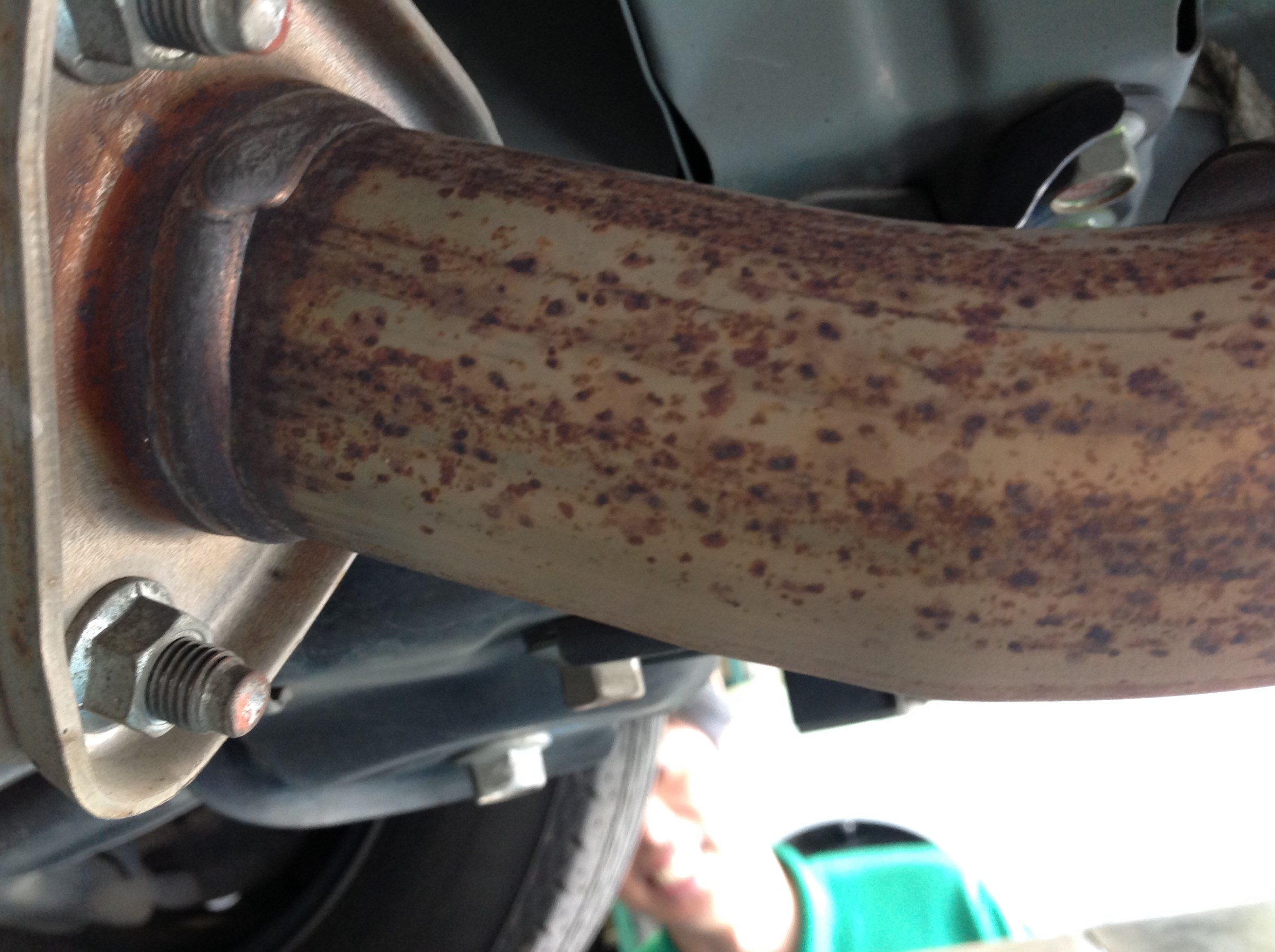 マフラーの錆を放っておくと、穴が開いて車検が通らなくなってしまうこともあります(>_<)