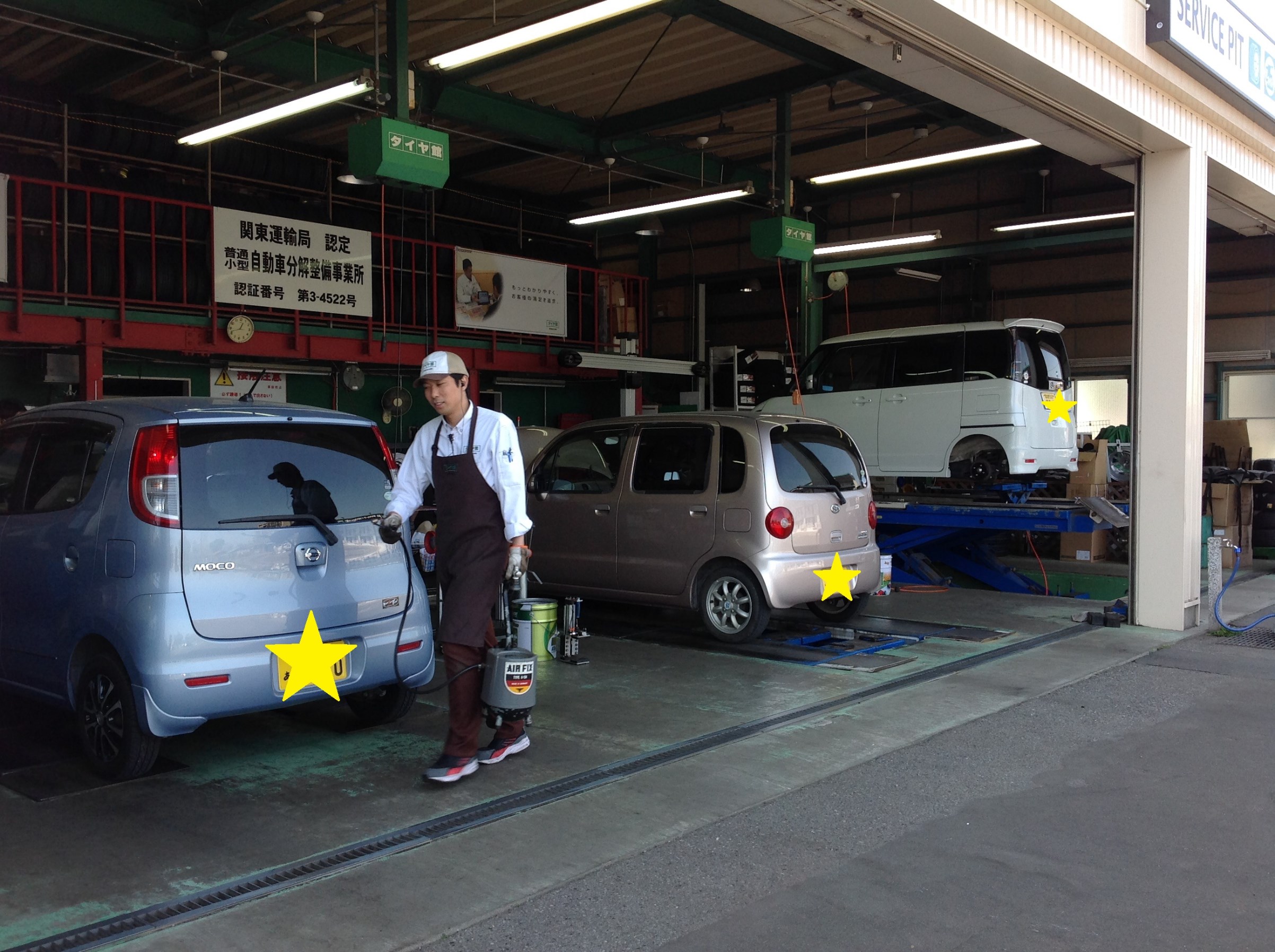 PITに軽自動車が3台並んでいて、可愛かったので写真を撮ったら、