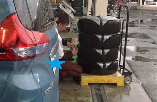 預かりタイヤにラベルを入れて