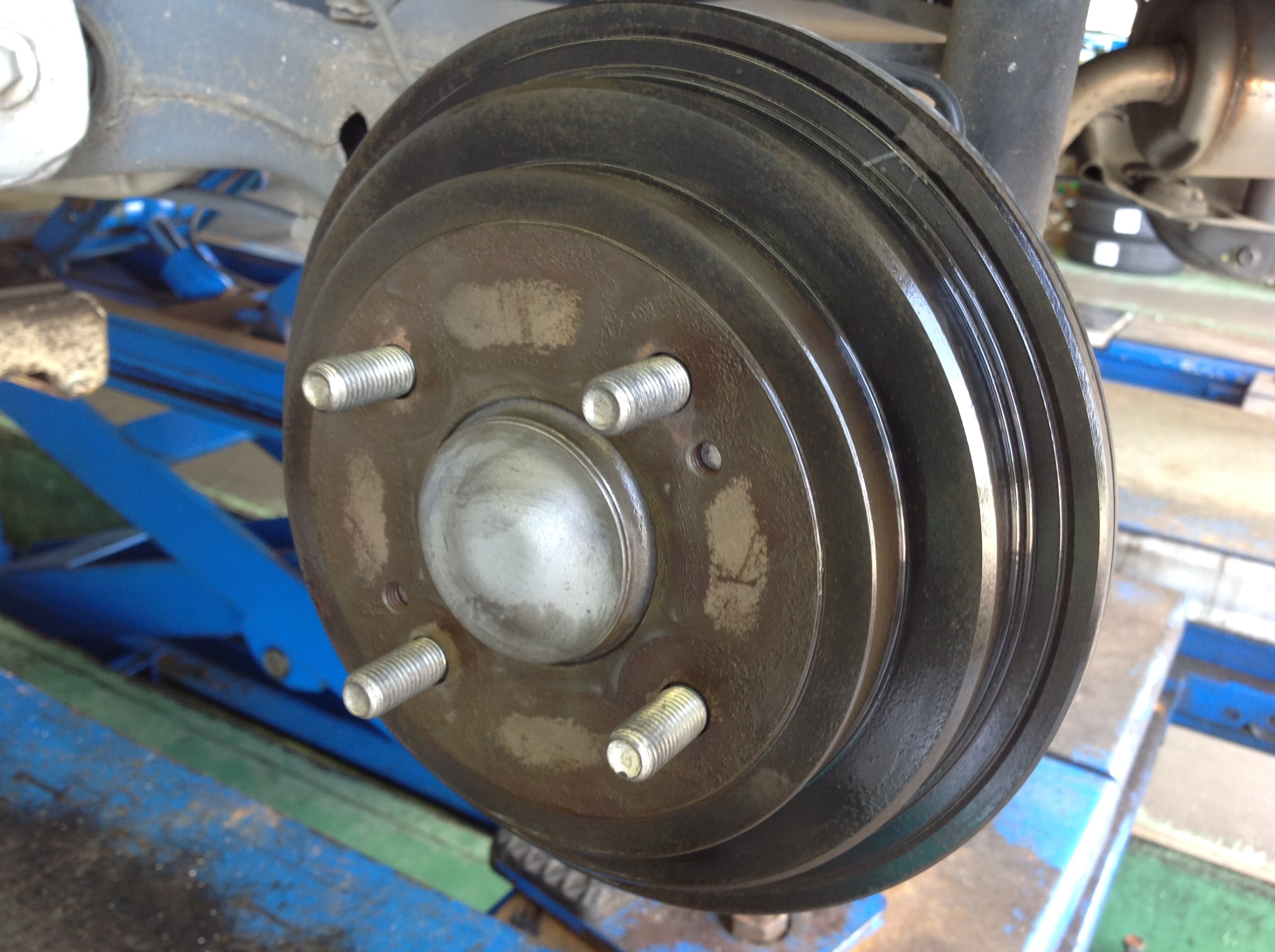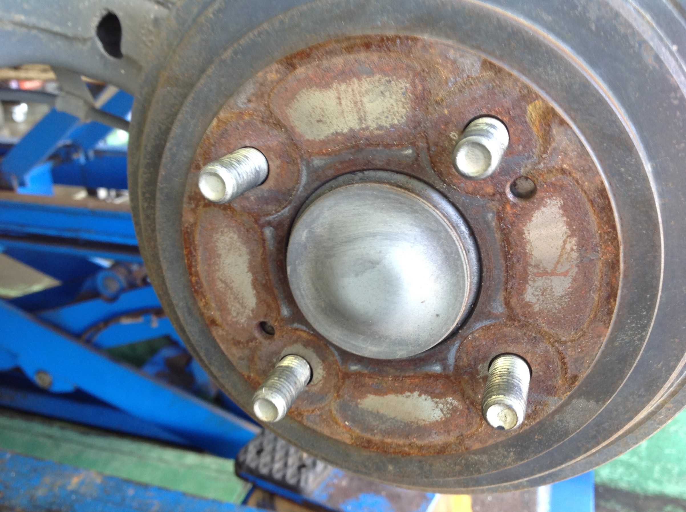 ハブが錆びているとタイヤホイールを真ん中に着けれないのでブレが出たりします。