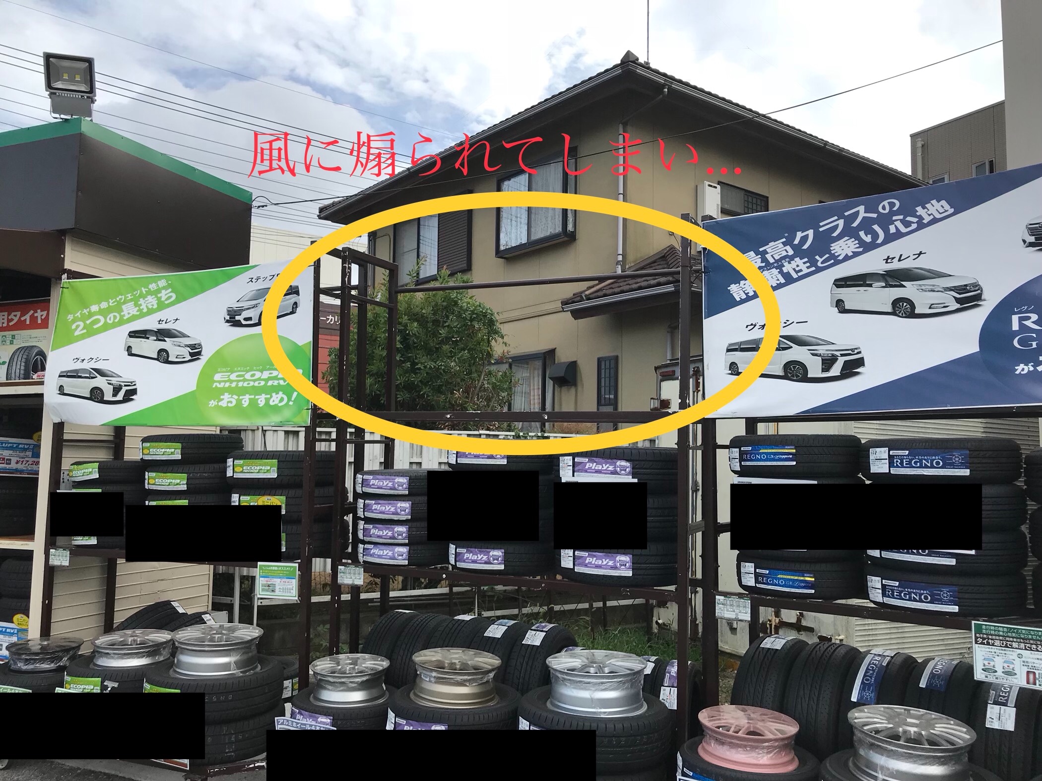風で飛ばされ外れそうだったので、撤去せざるを得なかったので仕方なく…