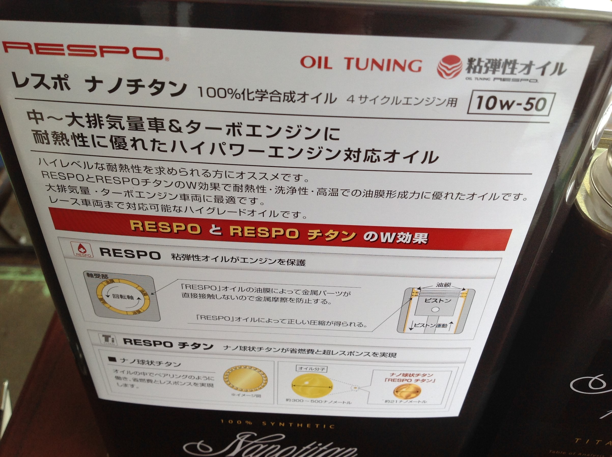 今回使用したオイルは『レスポ ナノチタン 10w-50』です。