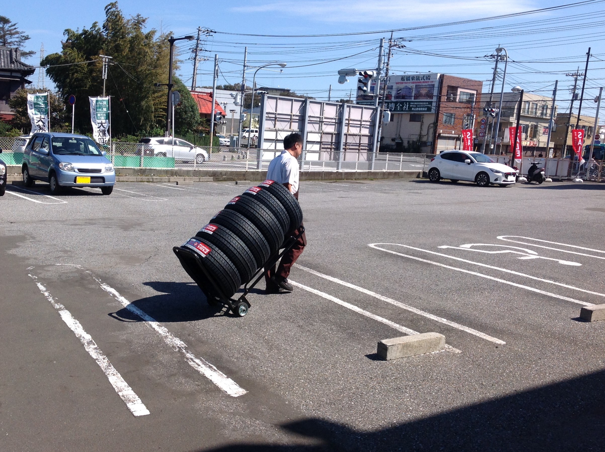 がんばってタイヤを片している”おじさん”・・・間違えたっ!笑