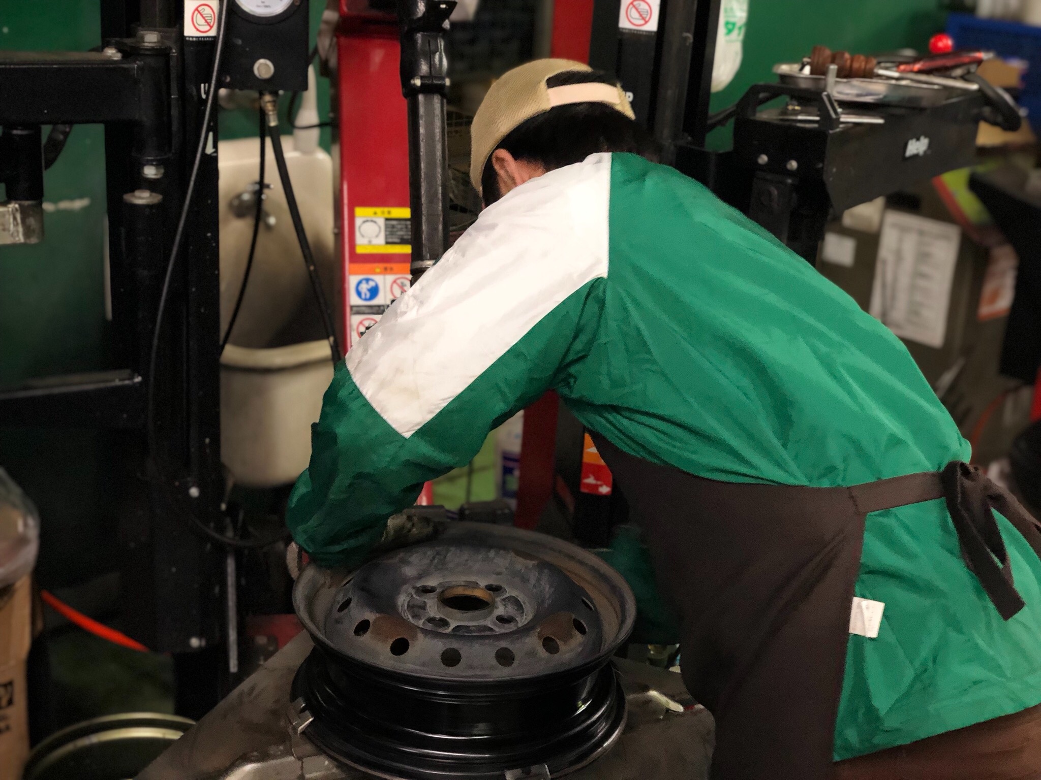 これは古いタイヤをはがして、新しいタイヤを組む前に行う、リム清掃をしているところです!