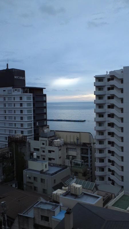 旅館からの景色は絶景でした!!夜になると海がライトアップされるらしいので、