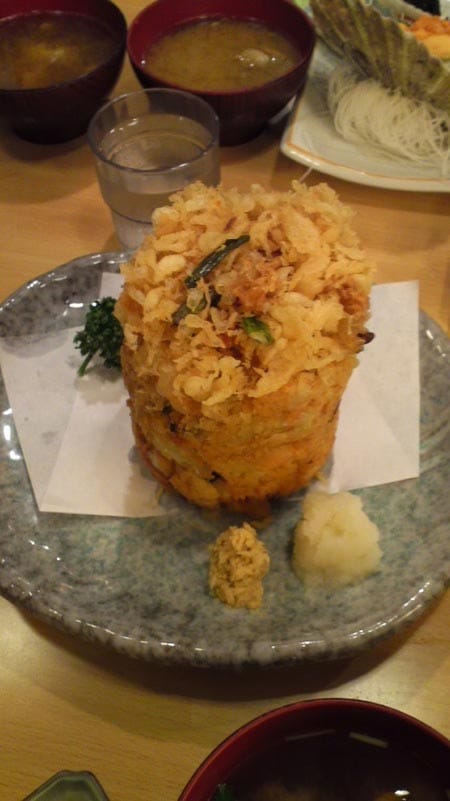 でも沼津のおいしい有名な海鮮屋さんででっかいかき揚げと、海鮮丼を頂きました(*^_^*)
