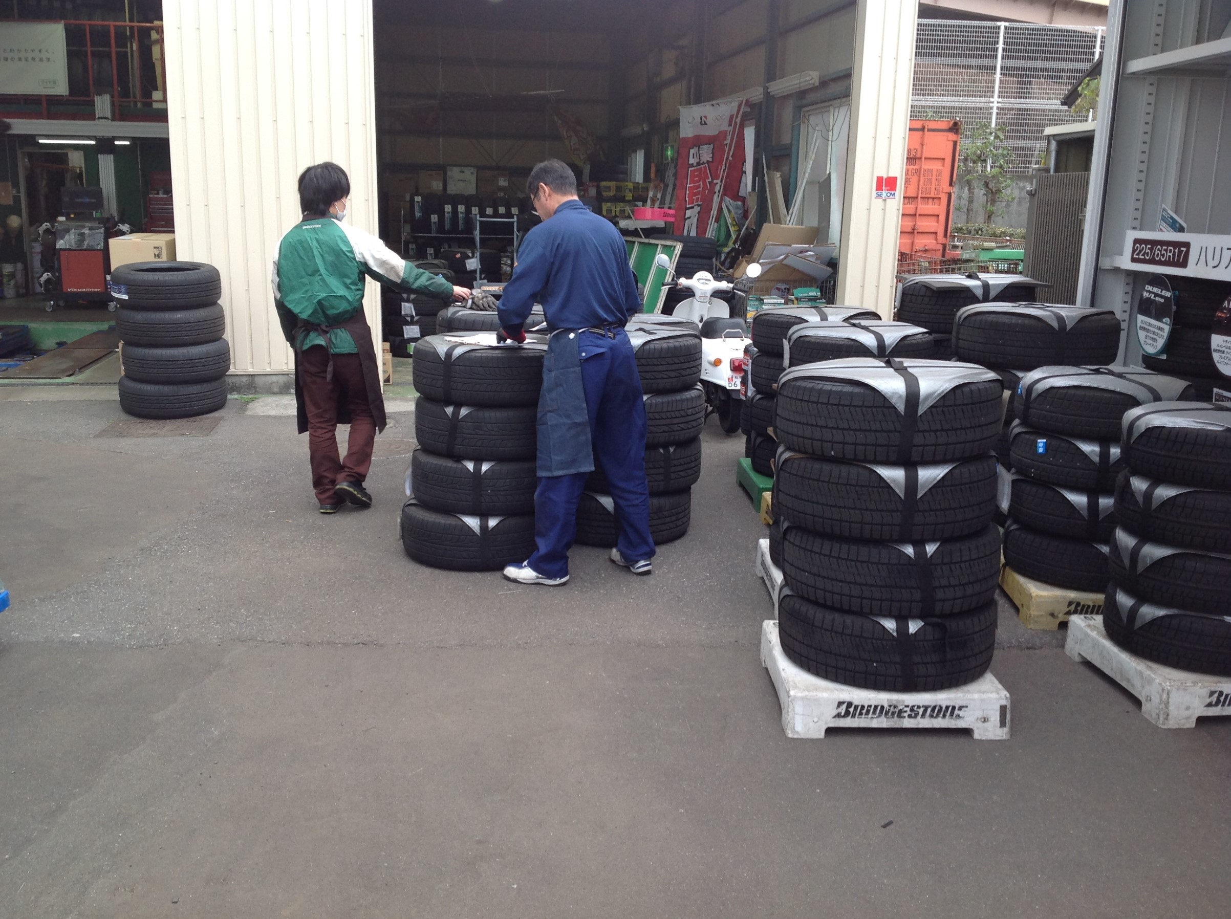 手前の人は、タイヤを運んできてくれた業者さんです。