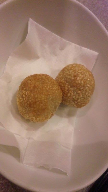 あとデザートにゴマ団子を頼みました!!友人と一個づつ分けたのですが、私はゴマがあんまり得意ではありませんがこのゴマ団子は、柔らかくてお餅とアンコもあったかくて美味しく頂けました!!!