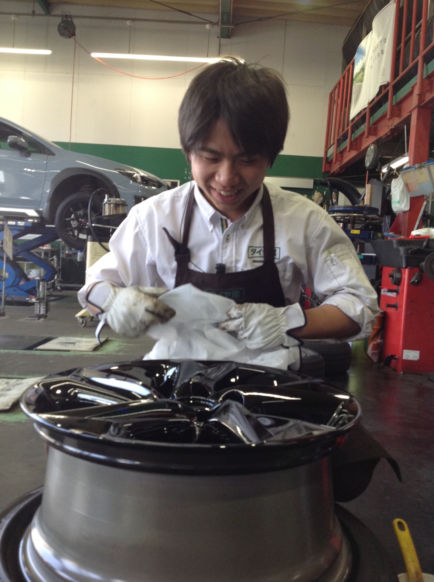 カーディーラーさんからの依頼でタイヤの組み込み作業してます。