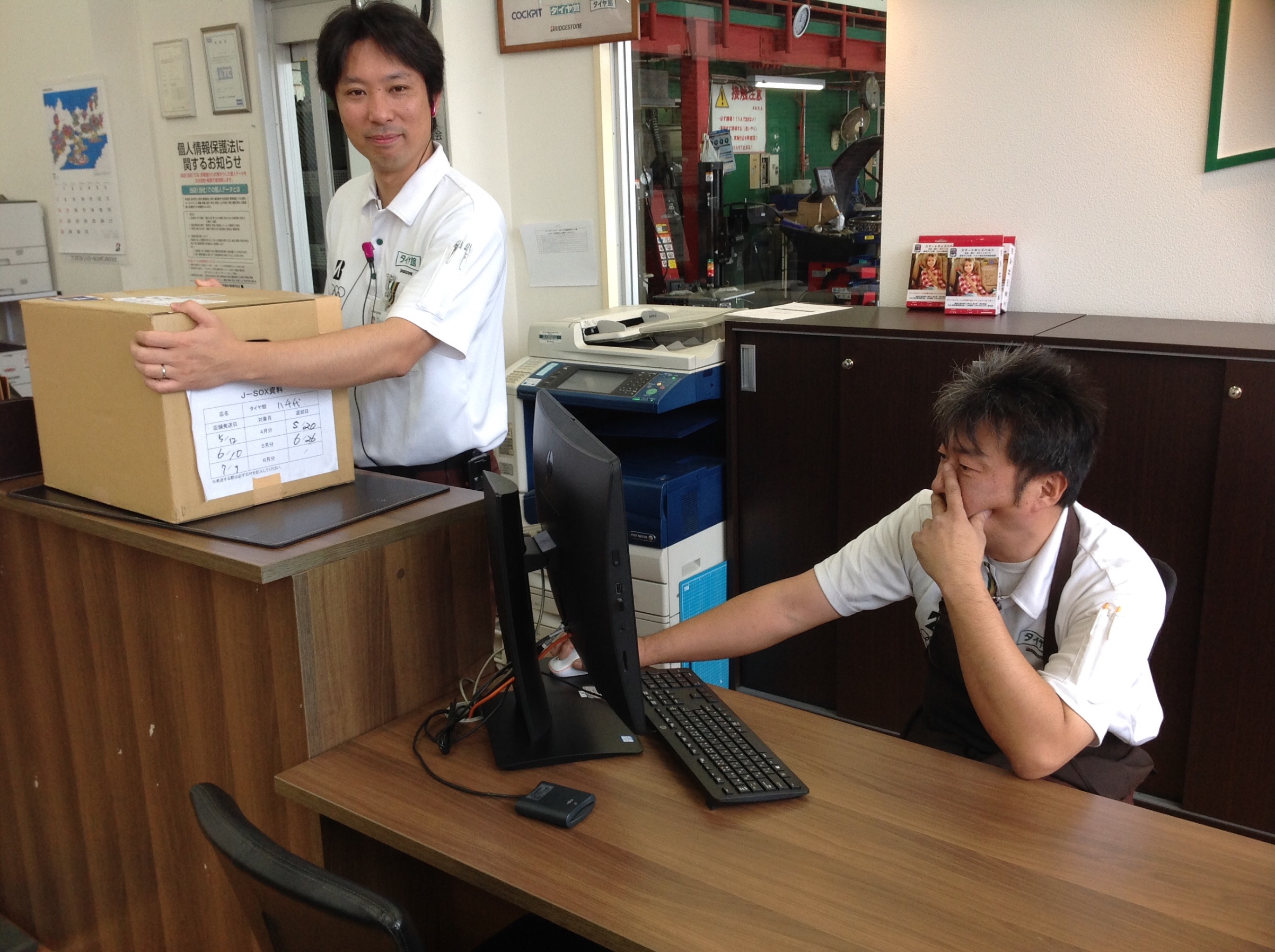 店長の元気な顔と中越さんは仕事に夢中した姿です!