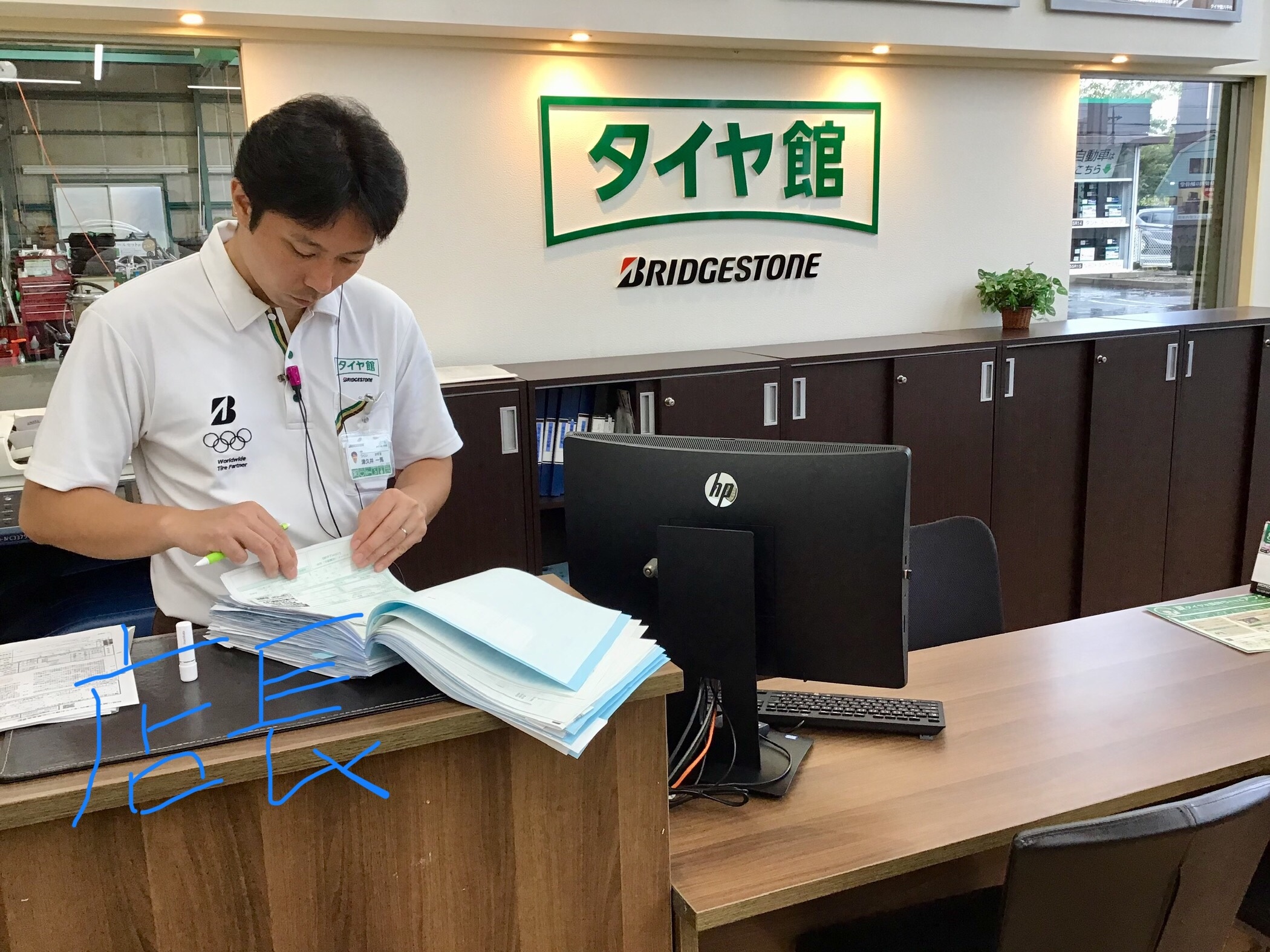 雨が降っていても、タイヤ館八千代の皆は一生懸命仕事をしています。