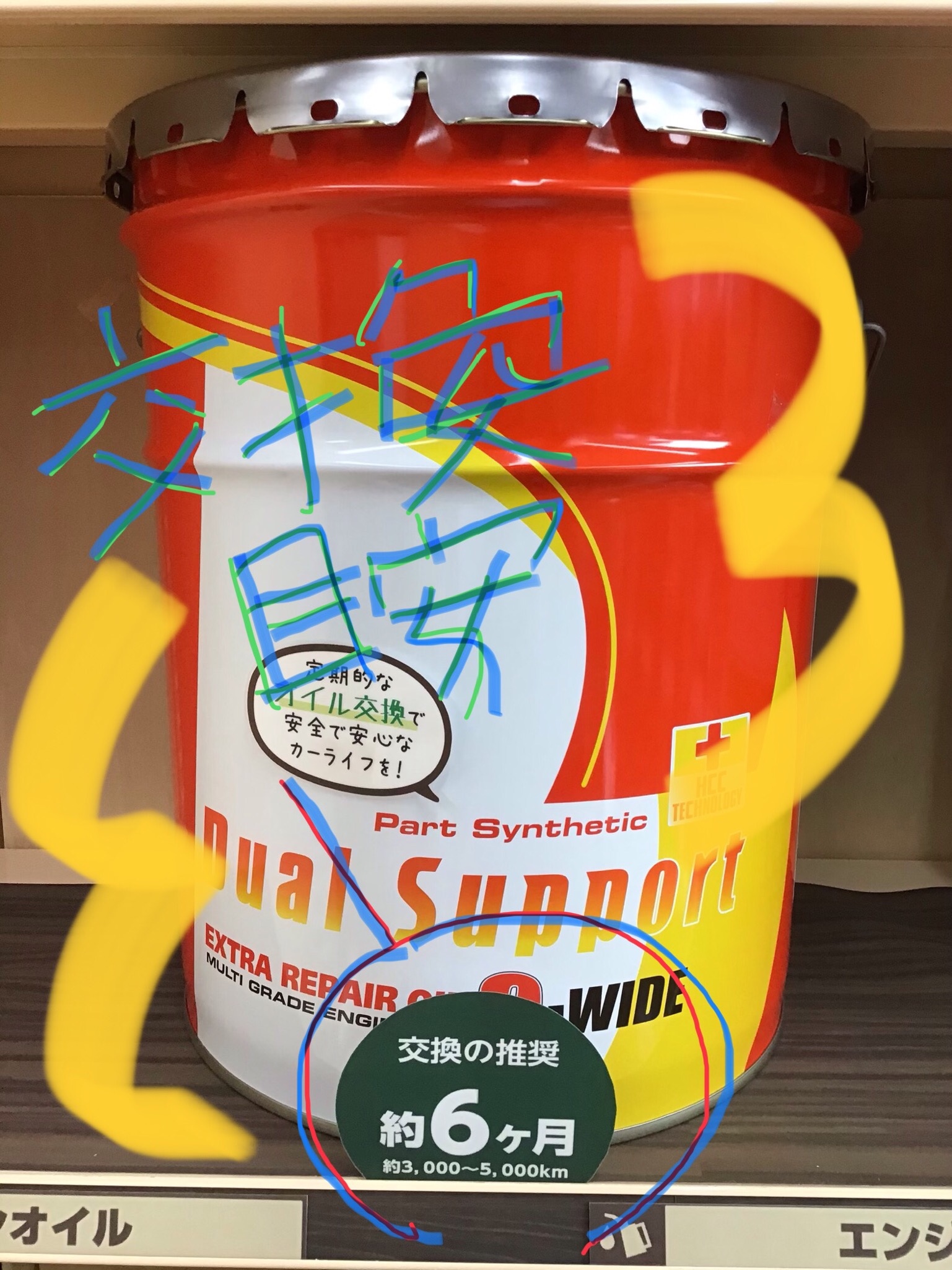 ①品名 : デュアルサポ-ト 「部分合成油」。