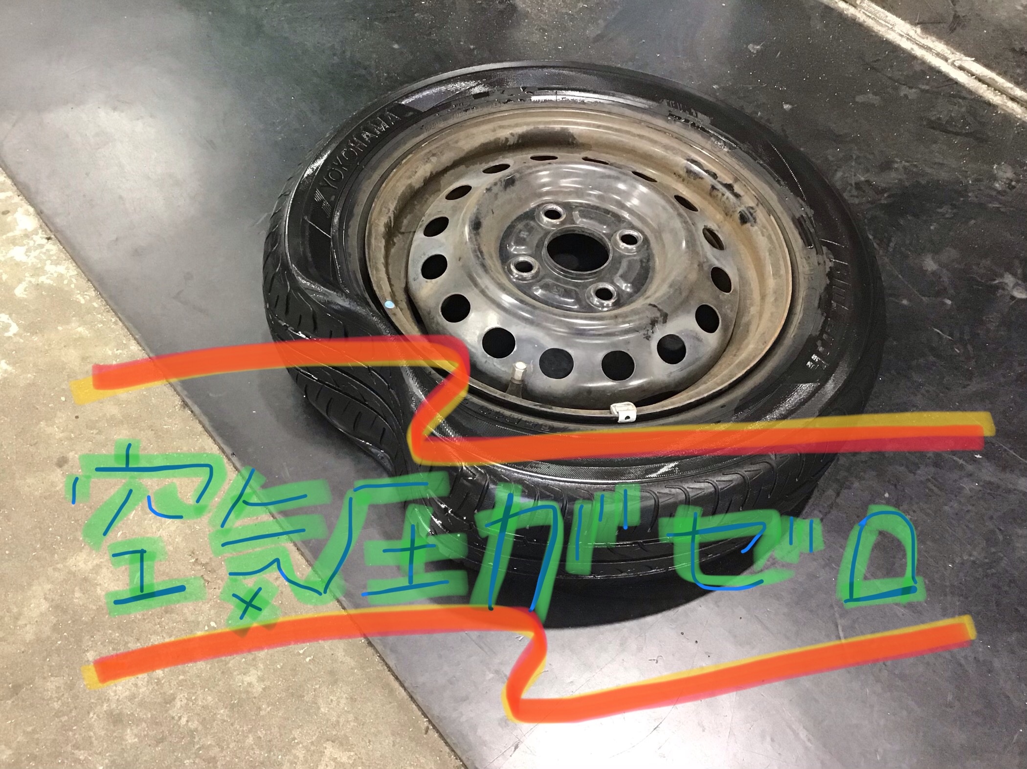 タイヤの空気圧がゼロです。「ペチャンコ」