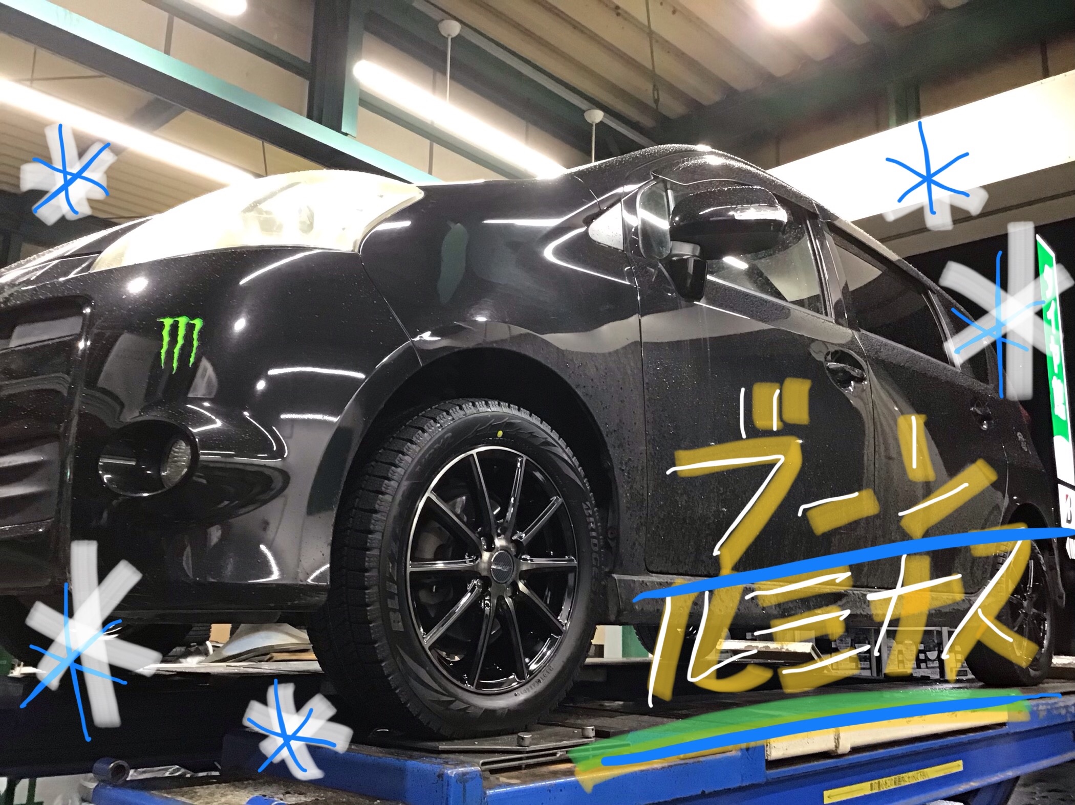 ブーンルミナスのスタッドレスタイヤ交換です。