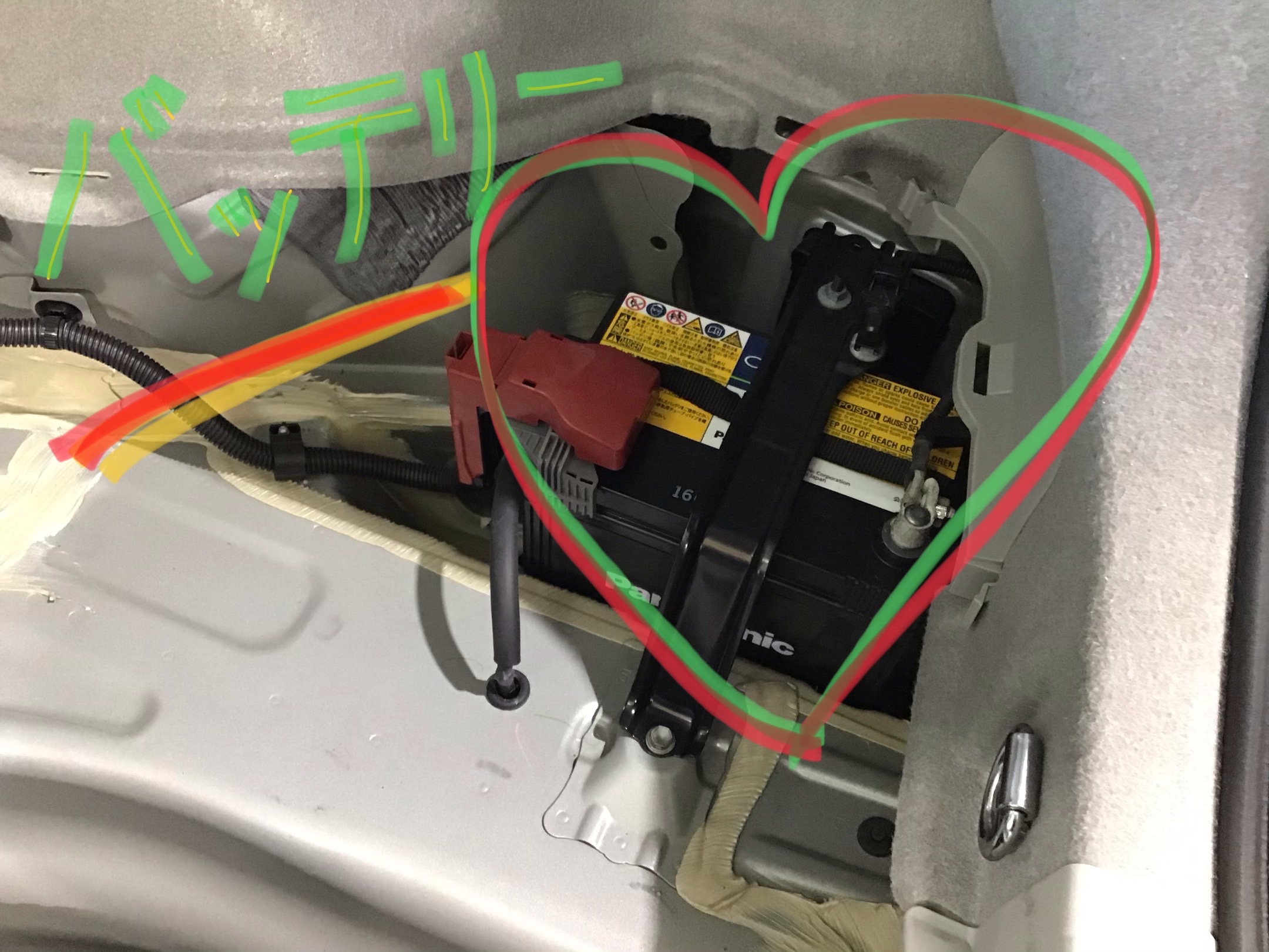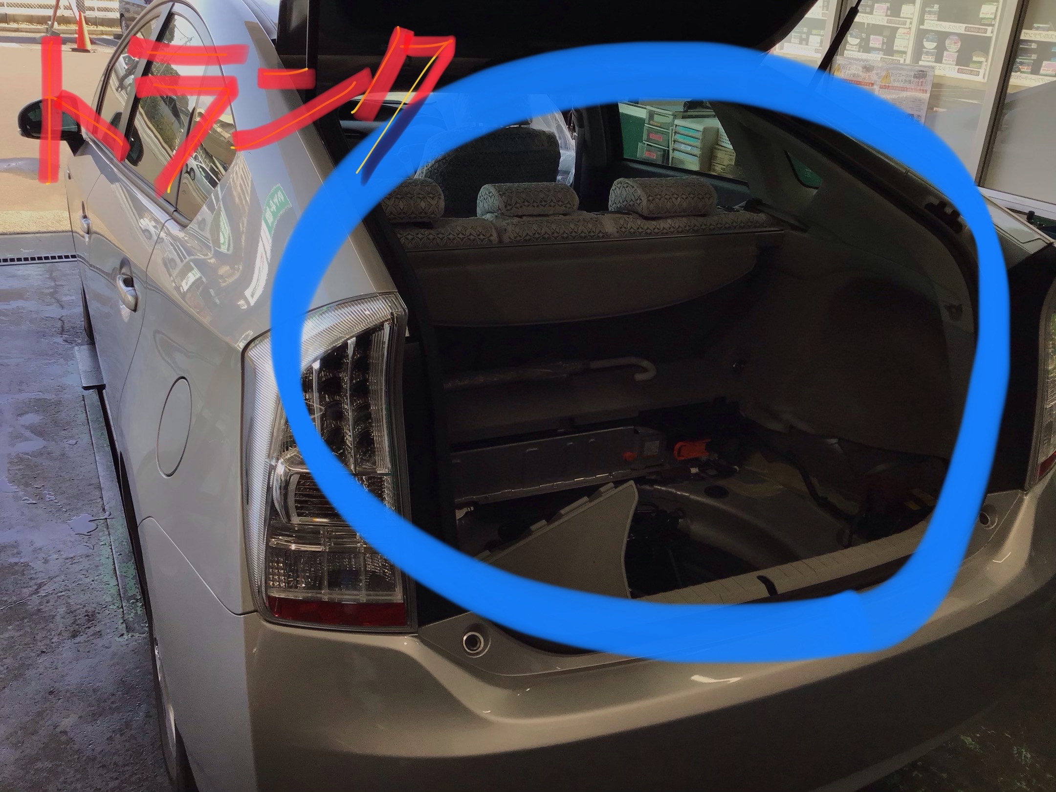 大体、プリウスセダン車のバッテリーはトランクの右側にありますよ❗️