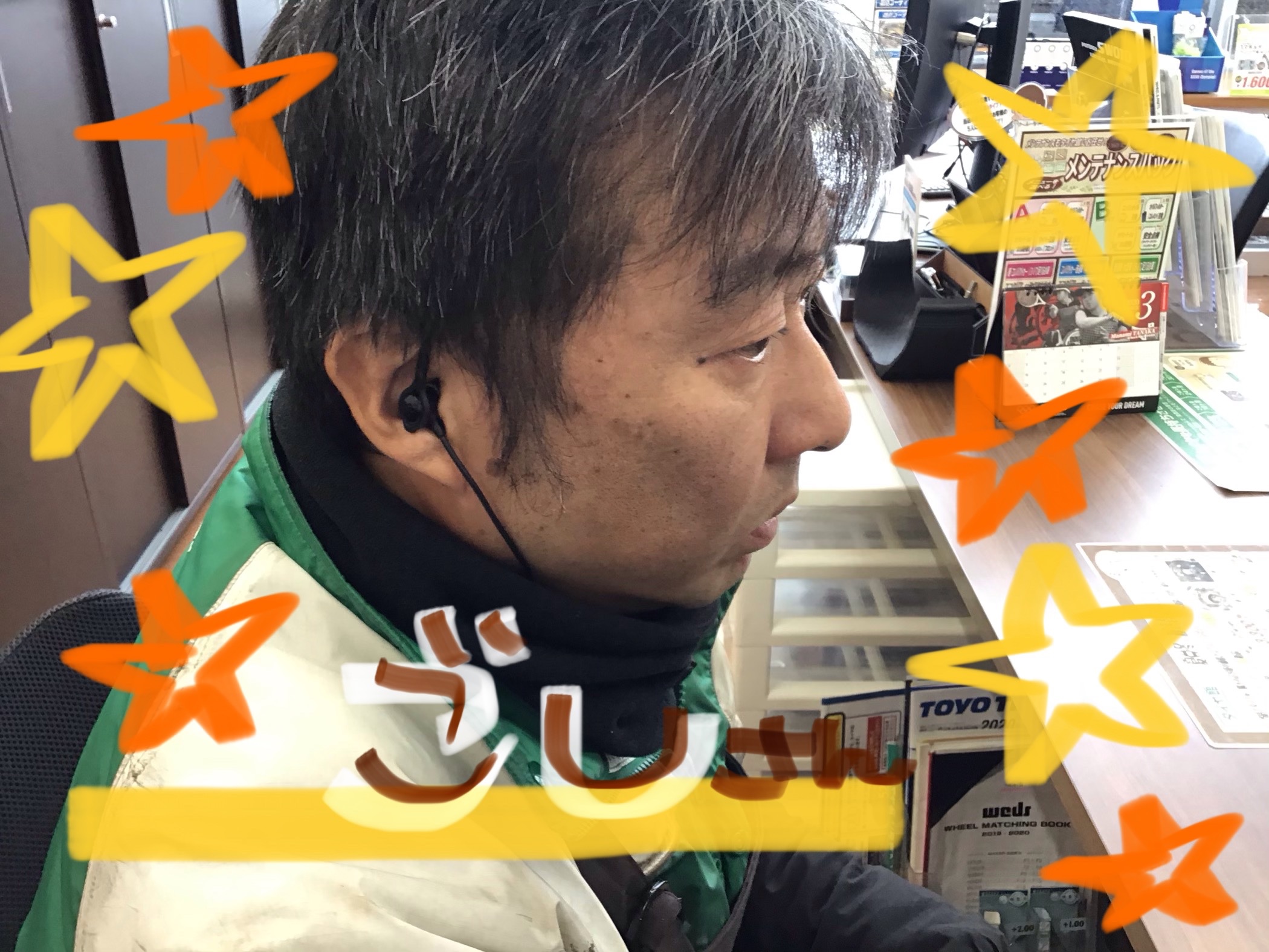 ゴシさんがピットでなくパソコンの仕事をしています。