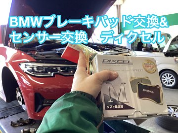 BMWブレーキパッド交換 センサー タイヤ館八千代 ディクセル 空気圧点検実施中