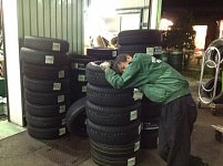 年末に発注が止まり商品がだいぶなくなっていました。 メーカーさんも始まりやっとタイヤ館にいろいろ届きました♪ 届いたタイヤの片付けに店長くったり(^◇^;) バッテリーも片さなきゃ♪