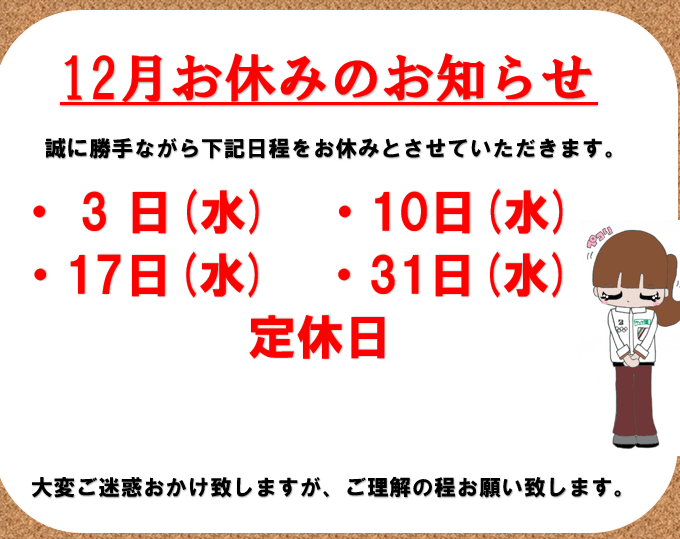 定休日のご案内