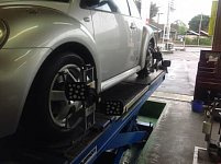 本日はフォルクスワーゲン、ニュービートルのタイヤ交換とアライメントをさせて頂きました! その中のアライメントをご紹介致します! ① ホイールに器具を取り付けます。 ② こちらの機械でタイヤの取り付け角度を写します。 ③ こちらを調整してタイヤの取り付け角度を正しい位置に戻します。 ④ ...