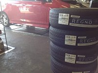 本日の作業はお車フーガにレグノを装着しました。 高級セダンのフーガの足元に装着されたレグノ。 お車のエンジンパワー、静粛性にピッタリのタイヤですね。 アライメントも実施して頂きありがとうございました。 100キロ点検で感想を聞かせてください。