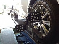 本日はボルボのアライメントをご紹介致します! 今回のお車はフロントのトーとリアのトーの4箇所調整出来るお車です! 写真でご説明! ① センサーをホイールに取り付けてカメラで読み取ります! ② 今の取付角度を確認します! ③ リアの角度を調整! 真ん中に見えるネジを回して調整します! ④ ...