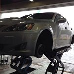 レクサスのタイヤ交換がありました。 サイズは、フロント225/40R18 リア255/40R18です。 大きなホイールでしかもリアは太いです! タイヤはポテンザS001を取り付けしました。 一緒にアライメントもしました。