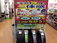 ブリヂストンのタイヤラインナップの中にはミニバン専用設計のタイヤがあるのをご存知でしょうか? ミニバンはセダンと比べ背が高くふらつきやすいんです! ミニバン専用設計のタイヤとセダン用のタイヤを押し比べてみて下さい! ここから先はお店で体験! 写真はミニバンとセダン用のタイヤの押し...