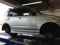 本日、ミニのアライメント作業を行いました。 アライメントはタイヤの角度を適正にする作業です。 タイヤの角度が適正でないとタイヤの早期磨耗に繋がります。 タイヤ交換のサイクルが早いなと思ったら一度点検に来てください。 アライメントがずれている可能性が高いです。 電話にて作業予約を行っ...