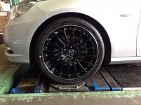 ベンツEクラスのタイヤ・ホイール交換がありました! ホイールはカールソンです。 限定ホイールで今年の1・2月にしか生産されていないホイールなんです! ブラックのホイールでシルバーのビスが目立っていますよね♪ タイヤはポテンザS001。 アライメント調整もしました!