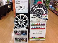エコホイールコーナーをプチリニューアルしました。 軽いホイールを装着すると車の運動性能、曲がる、止まる、燃費も良くなります。 展示の他にも、色んな種類カラーが発売されています。 エコフォルムで検索してみてね。