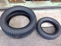 シボレーアバランチはピットに入るかなという位大きかったです。 タイヤも超ビッグサイズ! 軽自動車のタイヤと比べてみました( ´ ▽ ` )ノ タイヤの親子ですね〜 可愛かったので上にのせてみました!