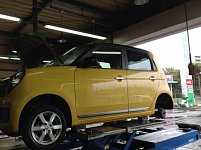 N・ONEとFITシャトルのタイヤ交換の様子です♪ N・ONE→レグノGRレジェーラ 155/65R14 FITシャトル→プレイズPX-C 185/60R15 どちらもタイヤと一緒にタイヤの角度の調整も行っていただいたので より乗り心地の良さと低燃費性能向上ですね(*^_^*)