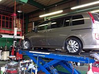 今日はアイシスです。 205/55R16のタイヤサイズでプレイズを装着しました。 角度調整のアライメントもしました。