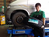ボンゴにデューラーA/T694お取り付けです! このお車、平成元年生まれなので私より年上なんです!Σ(゚д゚)先輩! 年上のお車との2ショットで宮川くんもニッコリ(^^)